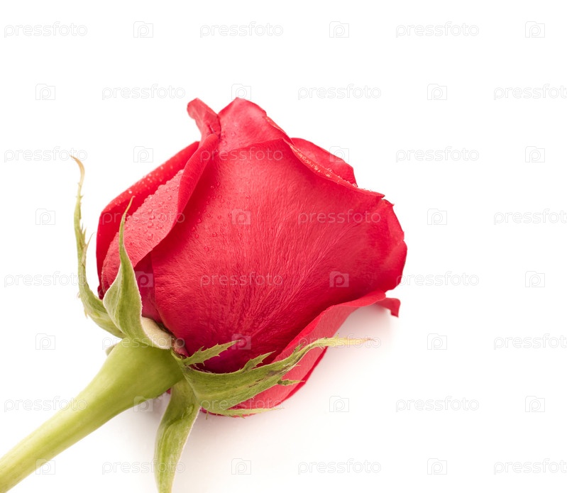 Красная роза крупным планом на белом