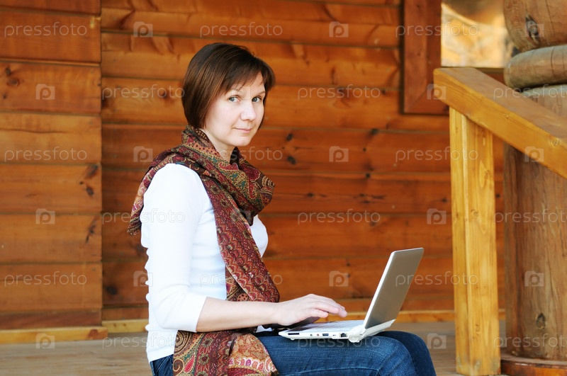 Женщина на даче с ноутбуком