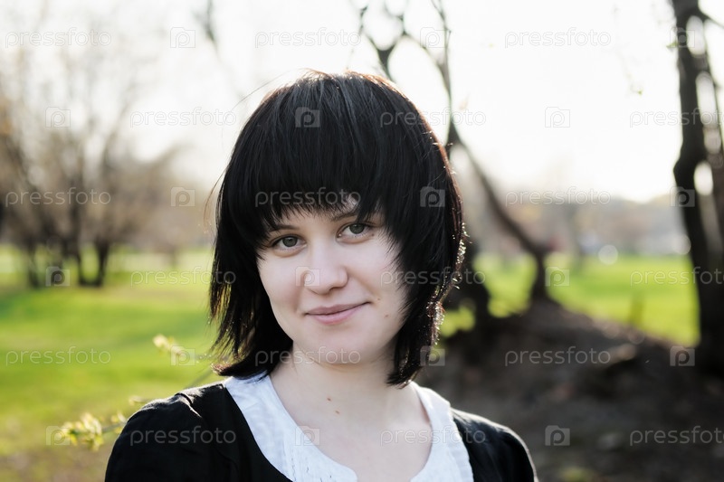 Портрет юной брюнетки на природе