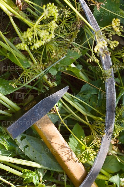 Серп и молот на траве