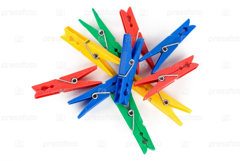Разноцветные прищепки на белом фоне