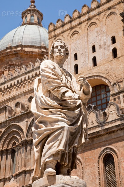 Статуя у собора недалеко от Палермо, Сицилия, Италия