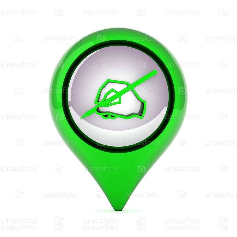 Зеленая кнопка с пишущей рукой. Иконка для веб-дизайна