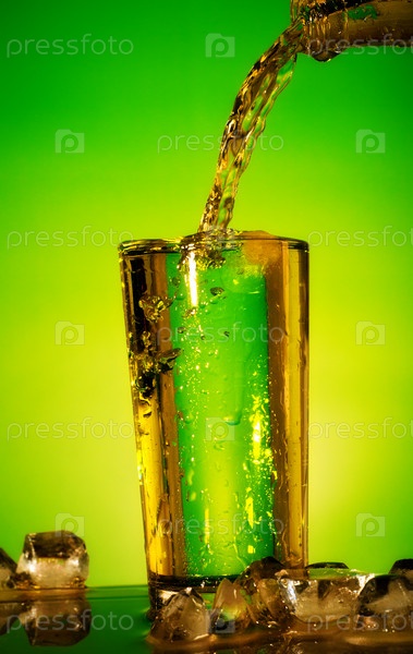 Газированная вода, наливаемая в стакан