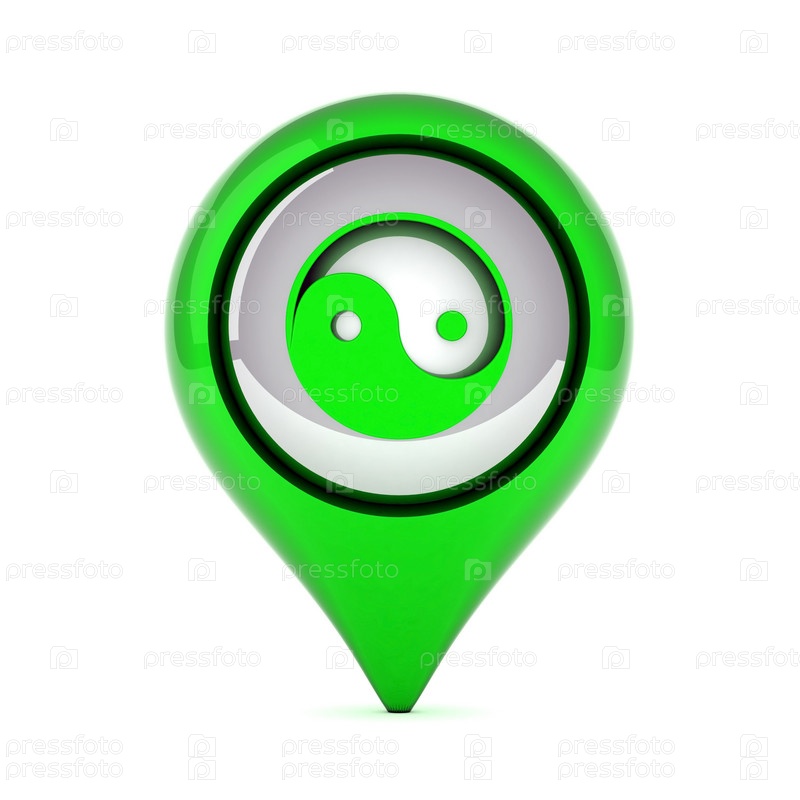 Зеленая кнопка со символом Инь Янь. Иконка для веб-дизайна