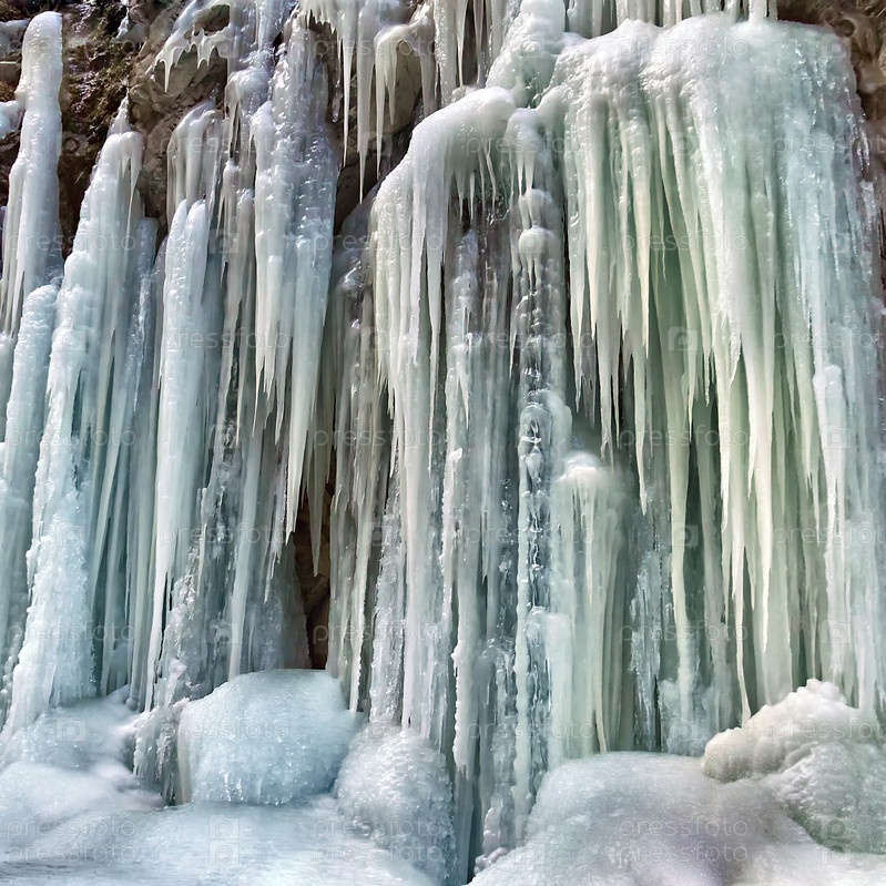 Замороженный горный водопад крупным планом
