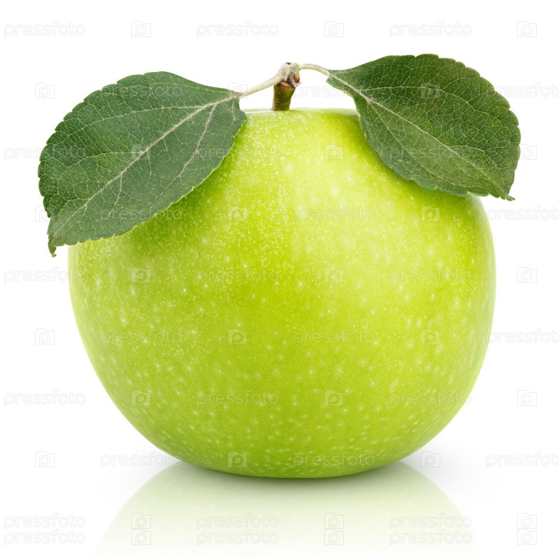Зеленое яблоко с листьями