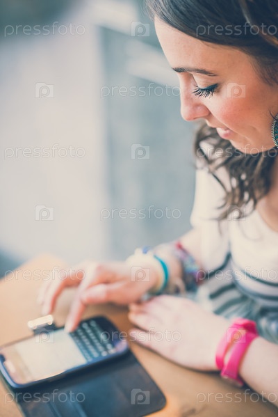 Молодая красивая женщина в кафе