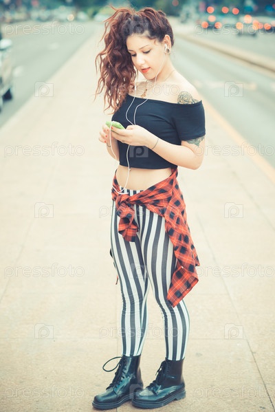 Молодая женщина с рыжими вьющимися волосами в городе
