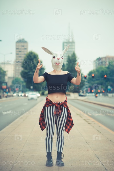 Женщина в маске кролика