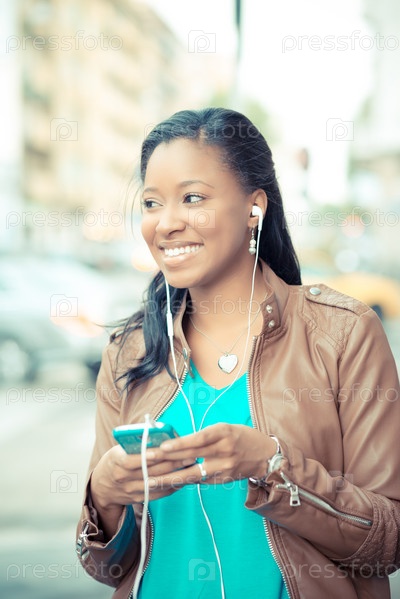 Молодая женщина в наушниках на улице