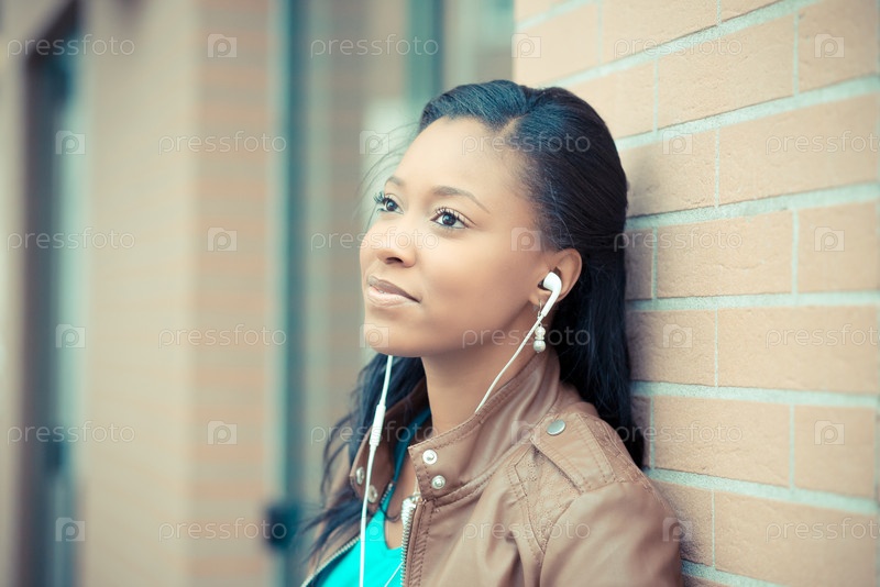 Молодая женщина в наушниках на улице