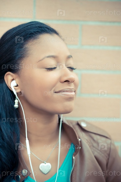 Молодая женщина в наушниках на улице