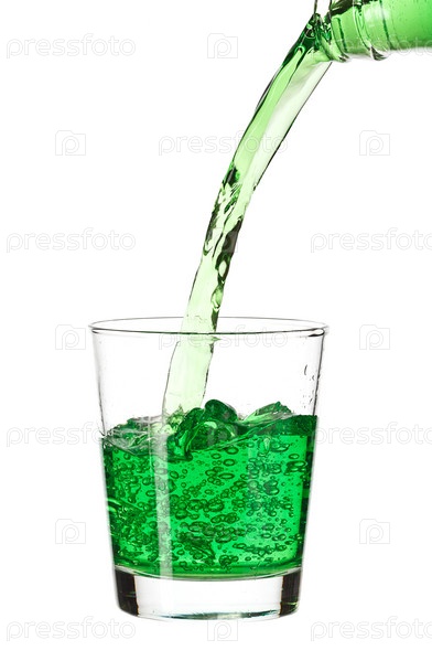 Стакан с зеленой жидкостью на белом фоне