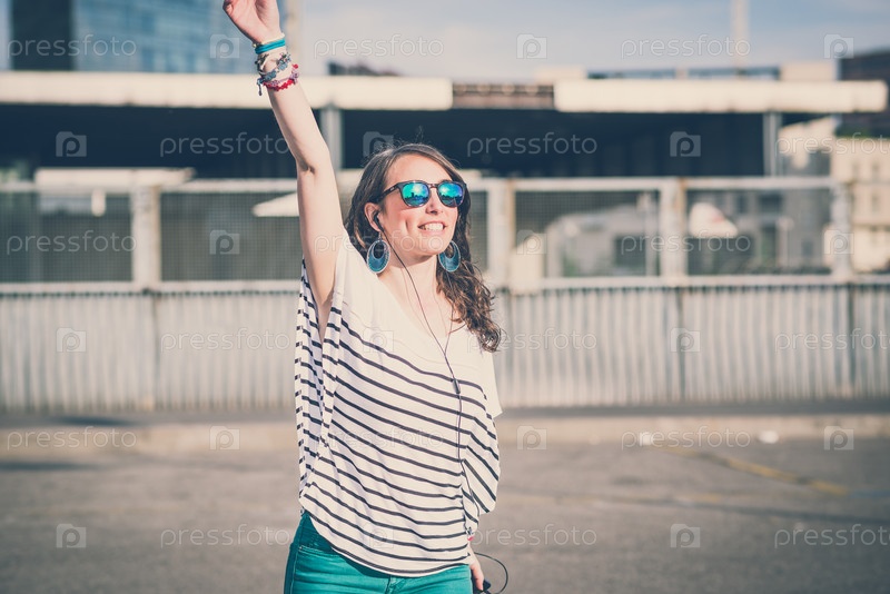 Молодая красивая брюнетка на улице в городе