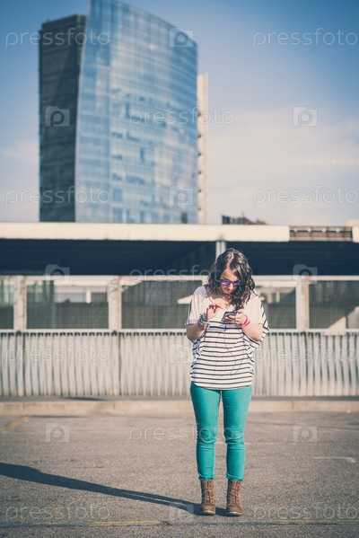 Молодая красивая брюнетка на улице в городе