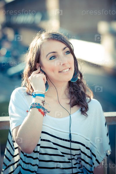 Молодая красивая брюнетка на улице в городе