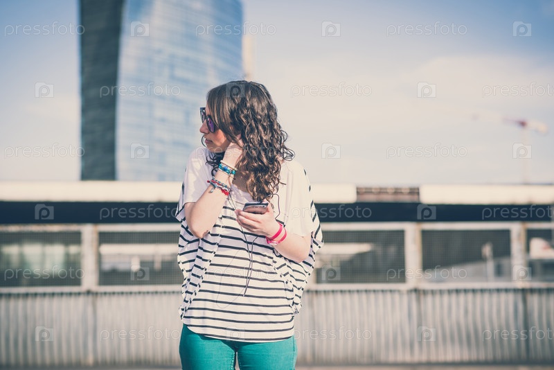 Молодая красивая брюнетка на улице в городе
