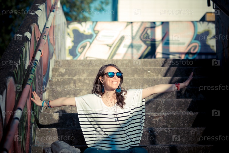 Молодая красивая брюнетка на улице в городе