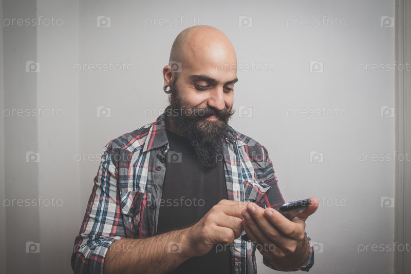 Бородатый и усатый молодой мужчина-хипстер