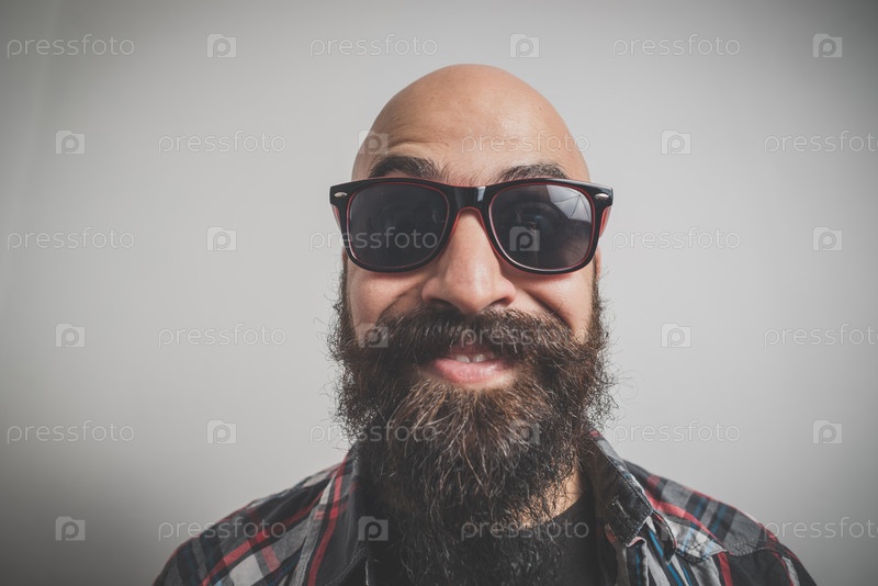 Бородатый и усатый молодой мужчина-хипстер