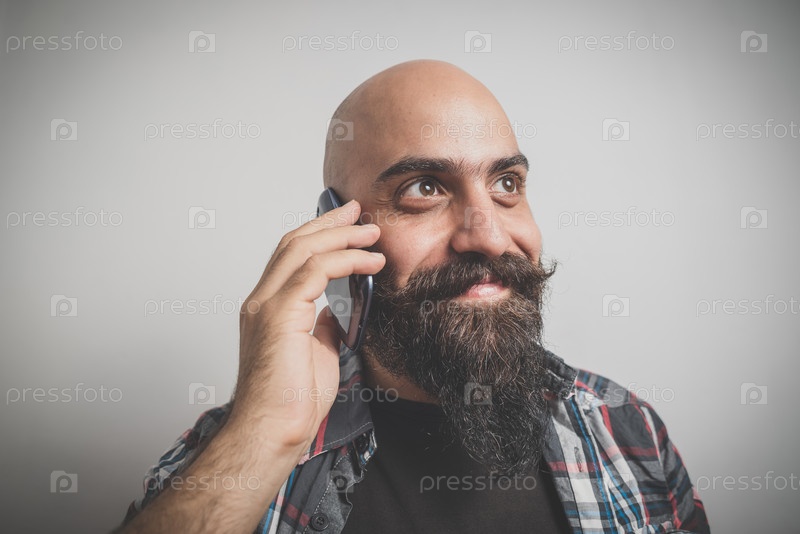 Бородатый и усатый молодой мужчина-хипстер