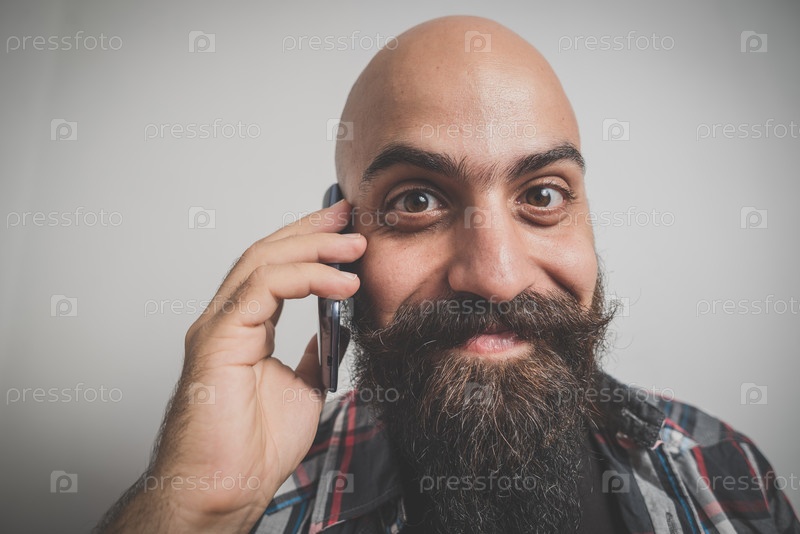 Бородатый и усатый молодой мужчина-хипстер