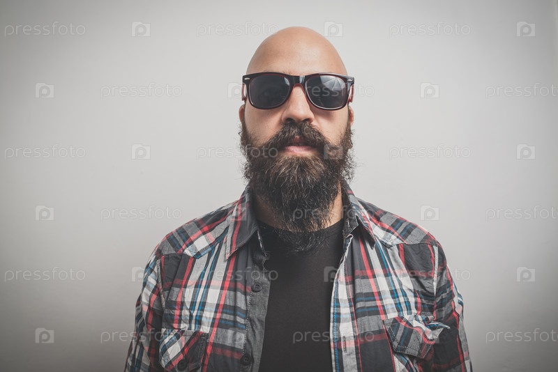 Бородатый и усатый молодой мужчина-хипстер