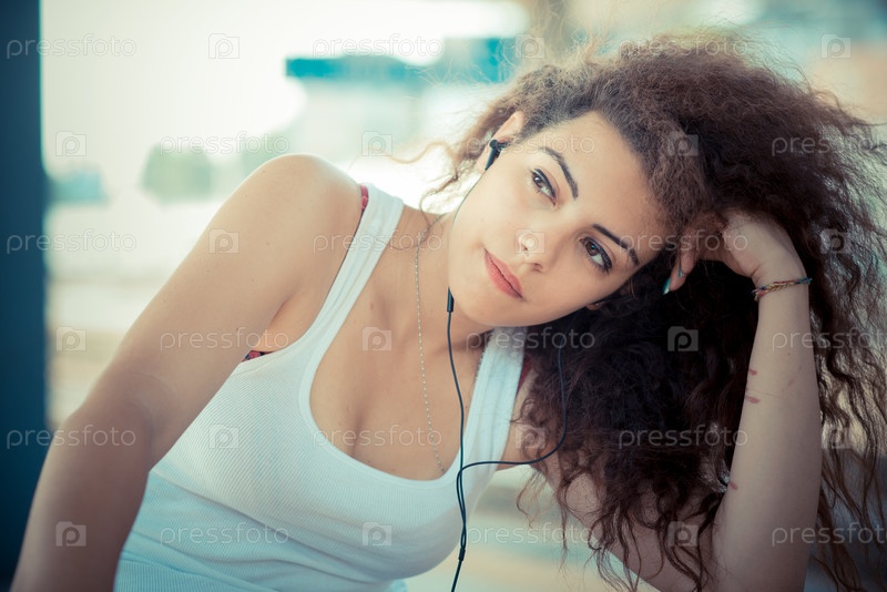 Молодая женщина слушает музыку