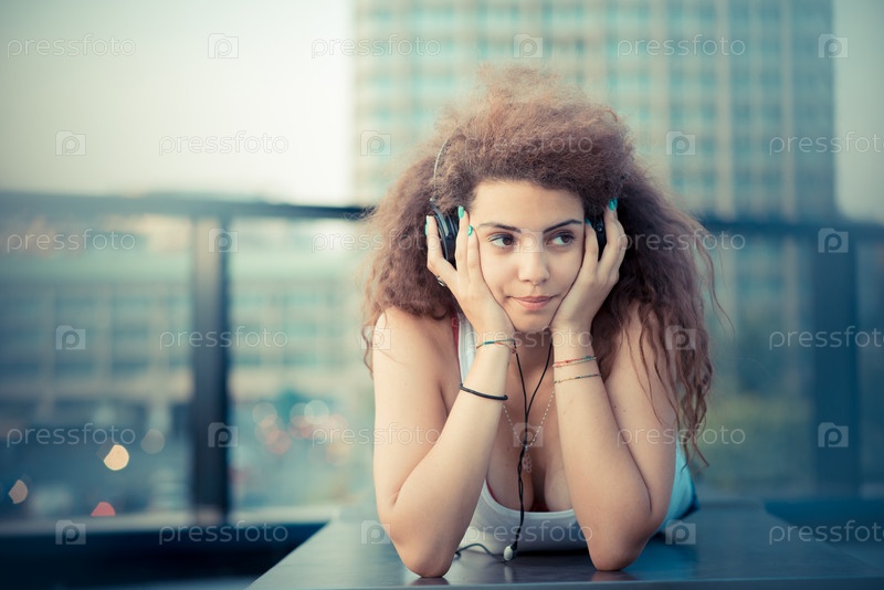 Молодая женщина слушает музыку