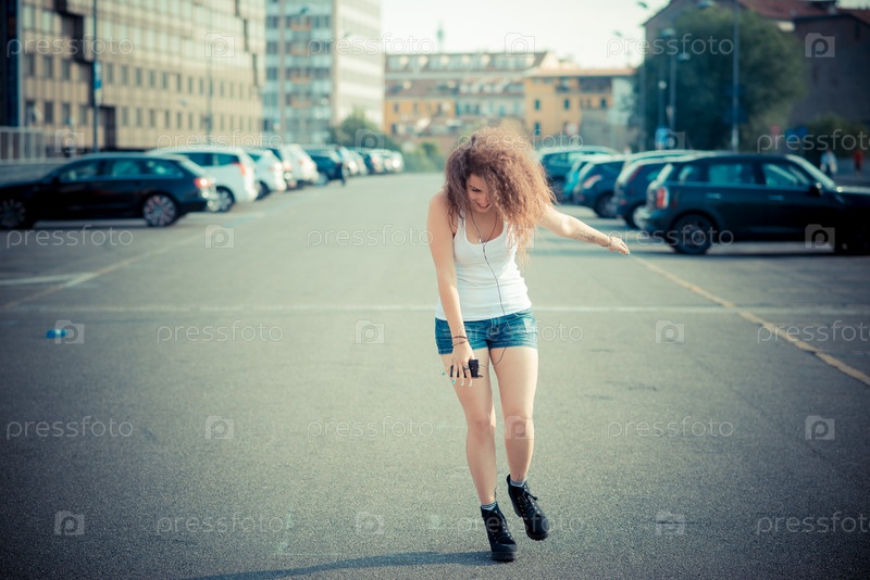 Молодая женщина слушает музыку