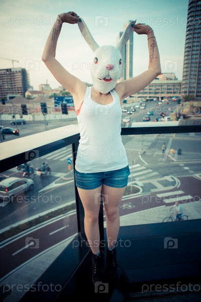 Молодая красивая женщина в кроличьей маске