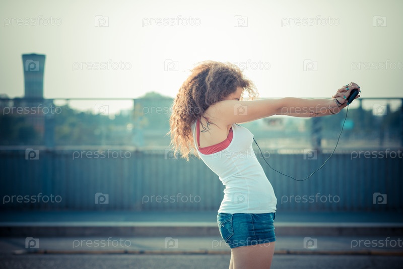 Молодая женщина слушает музыку