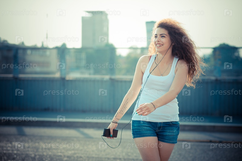 Молодая женщина слушает музыку