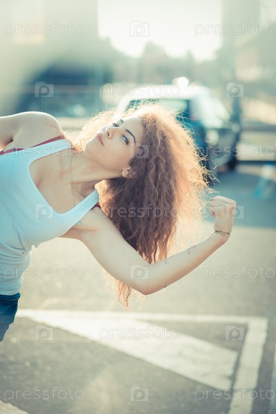 Молодая красивая женщина-хипстер на улице
