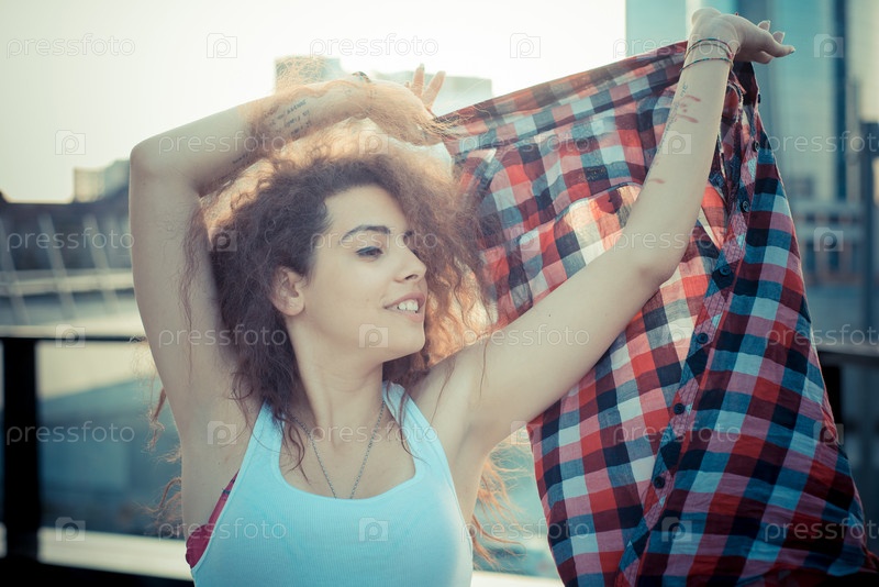 Молодая красивая женщина-хипстер на улице