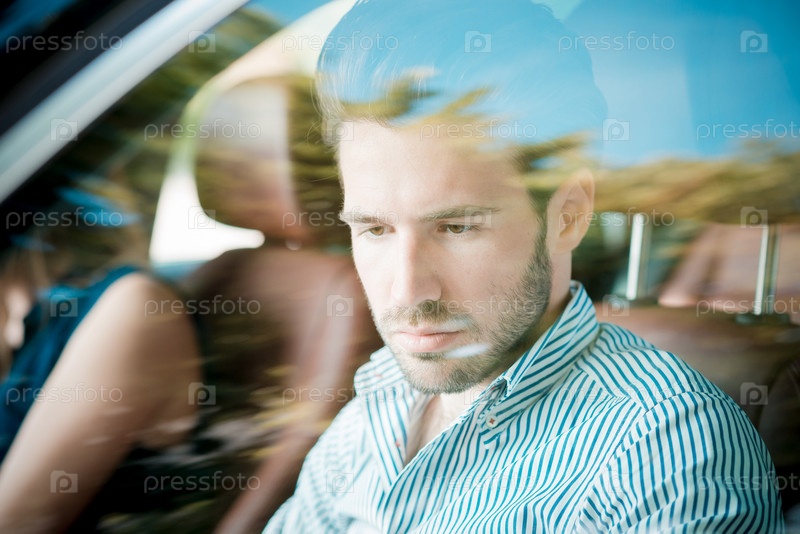 Молодой красивый мужчина за рулем автомобиля