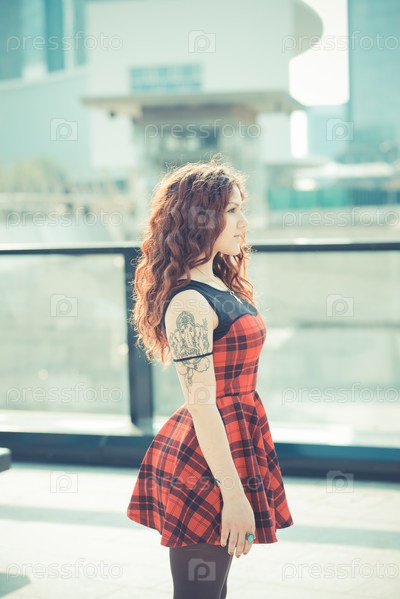 Молодая красивая женщина с рыжими вьющимися волосами