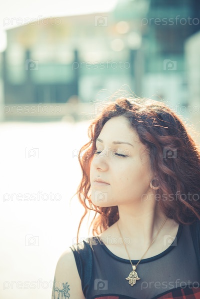 Молодая красивая женщина с рыжими вьющимися волосами