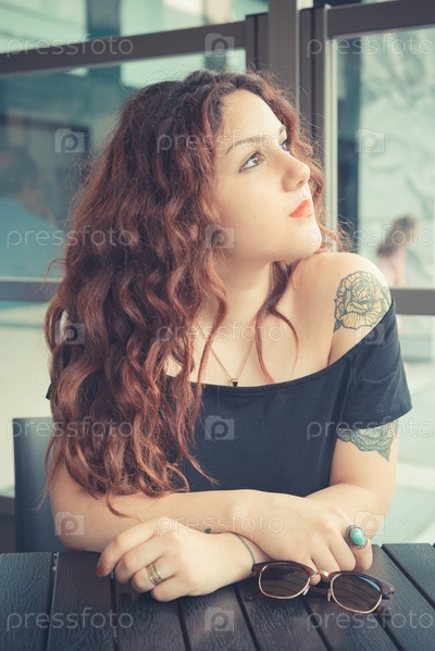 Молодая красивая женщина с рыжими вьющимися волосами