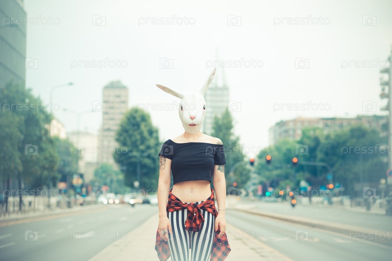 Женщина в маске кролика