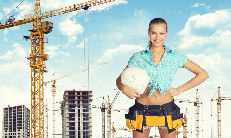Женщина на фоне строительной площадки