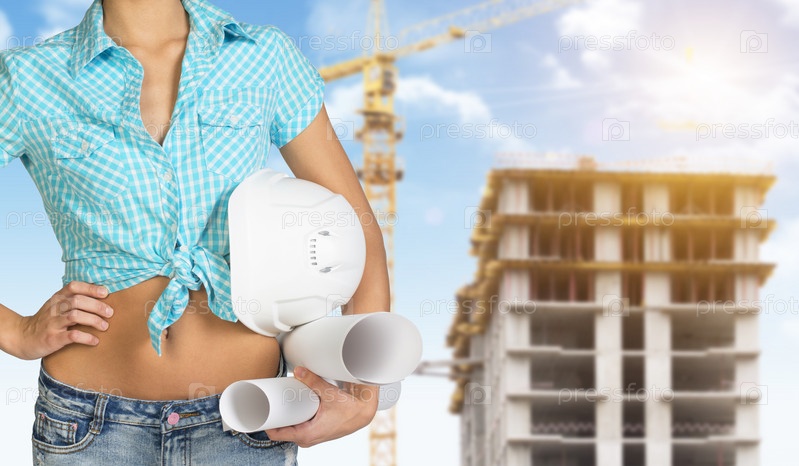 Женщина на фоне строительной площадки