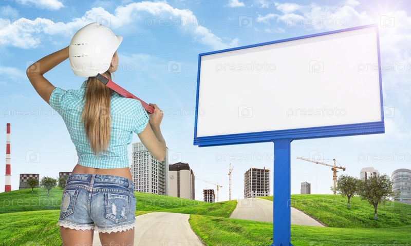 Женщина на фоне строительной площадки