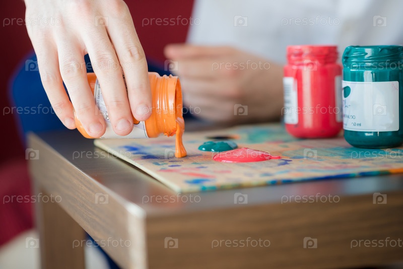 Краска и палитра в руках художника