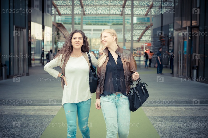 Две красивые стильные девушки в городе