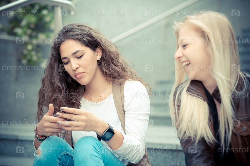 Две красивые стильные девушки в городе