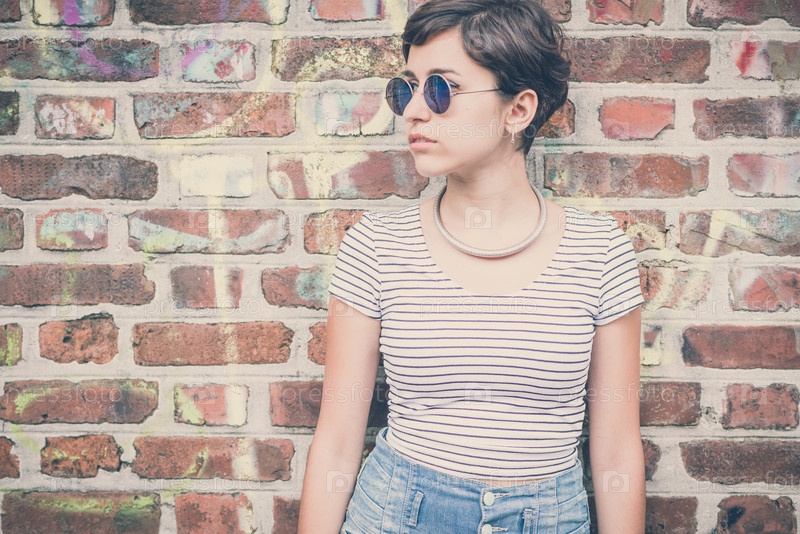 Молодая женщина-хипстер на городской улице