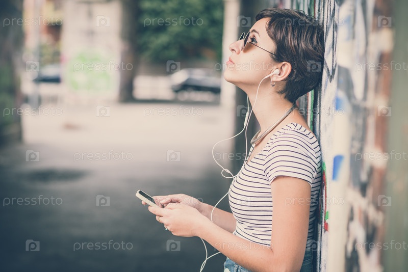 Молодая женщина-хипстер на городской улице