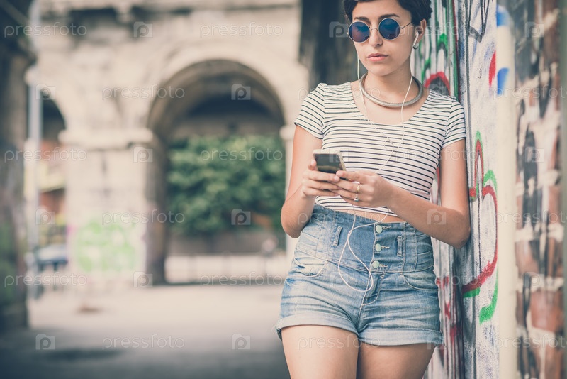 Молодая женщина-хипстер на городской улице